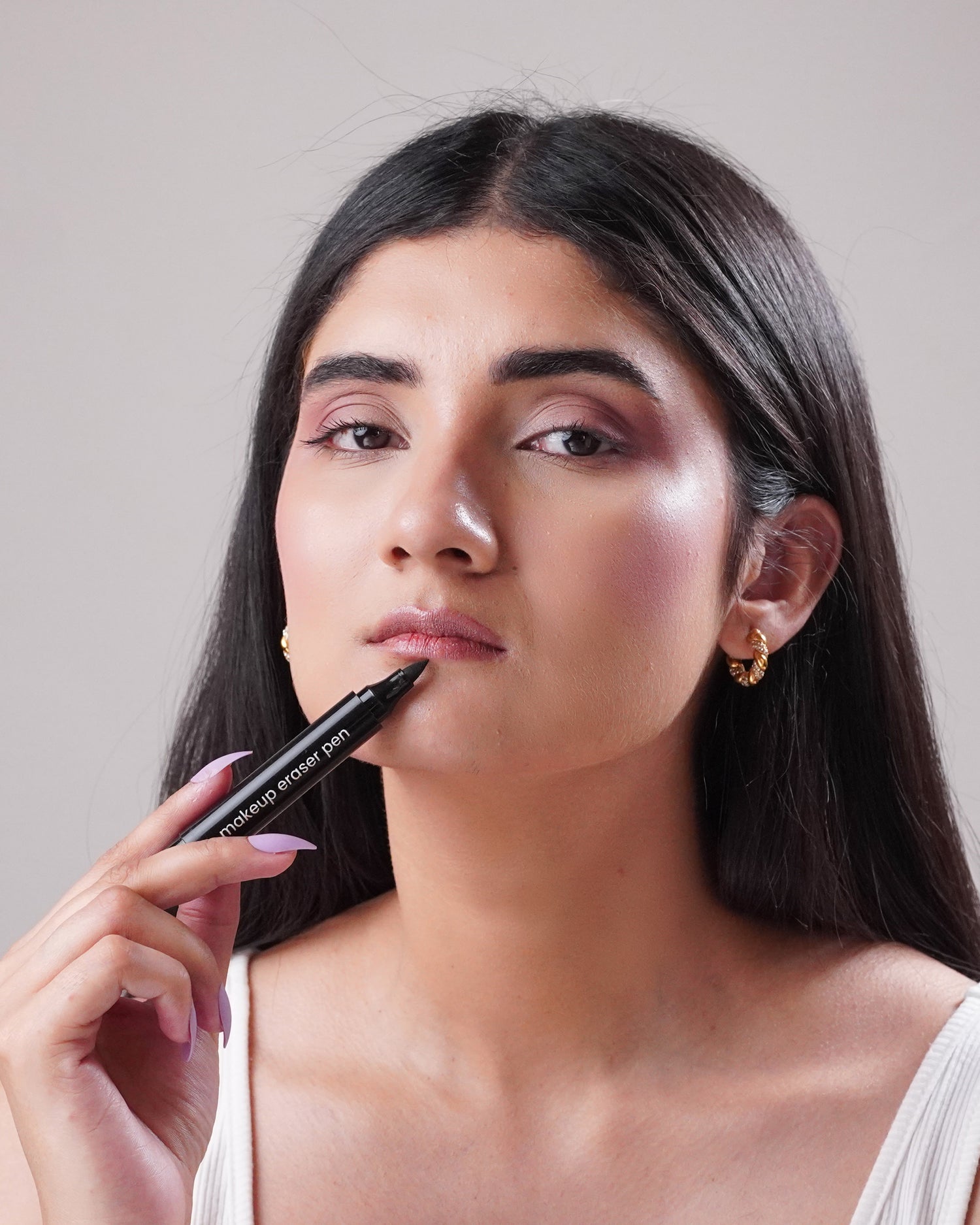 Our Makeup Eraser Pen contains micellar water that helps dissolve and lift makeup from the skin. The eraser tip is designed to gently remove makeup with precision.